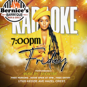 Join us every Friday for a night of music, fun, and great vibes! Grab the mic, sing your favorite songs, and enjoy Bernice’s signature BBQ and cocktails.