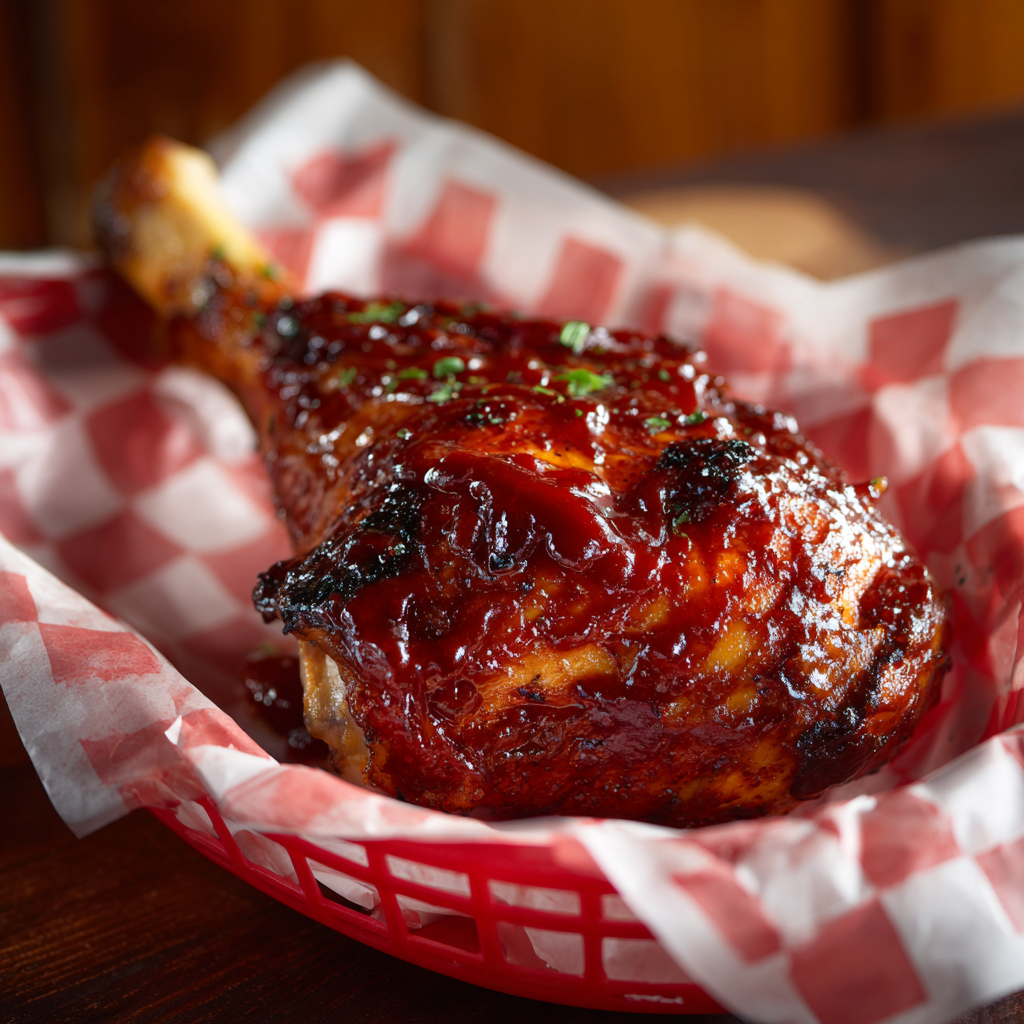 A meaty, slow-cooked turkey leg with deep, smoky flavor — a classic done right.